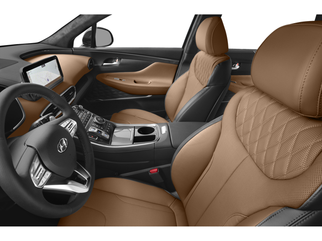 All Hyundai amenities and luxury packages are neatly put together in one vehicle – the Santa Fe Calligraphy. This trim level is truly where the Santa Fe shines brightest. This vehicle proudly wears premium quilted Nappa leather, quilted door panels, and an Eco-Suede headliner.