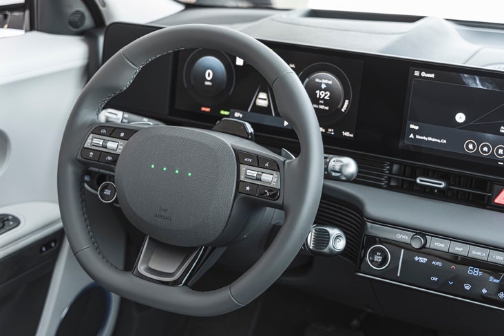 As many critics have noticed, Hyundai’s one-pedal driving function challenges more expensive EVs, such as Tesla EVs. Another advanced feature is its customizable regenerative braking using the steering wheel paddles.