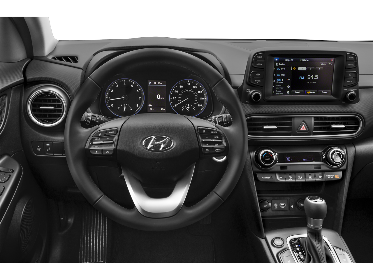 Powered by a 1.6L Turbocharged GDI 4-cylinder engine paired with a 7-speed EcoShift Dual Clutch Transmission, this Front Wheel Drive Kona delivers responsive acceleration while achieving an EPA-estimated 30 MPG combined.