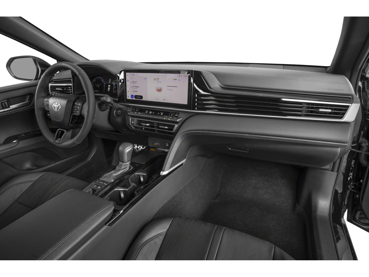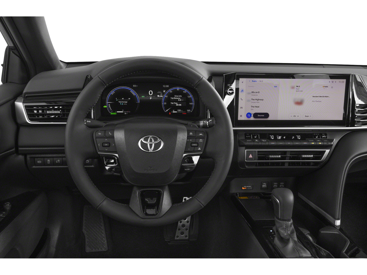 Step inside and you'll be captivated by the Camry's thoughtfully designed interior, featuring premium leather seating, heated and ventilated front seats, and a panoramic glass roof that floods the cabin with natural light. The advanced 12.3" touchscreen Toyota Audio Multimedia system, complete with wireless Apple CarPlay and Android Auto compatibility, seamlessly integrates your digital life with the vehicle, keeping you connected and entertained.